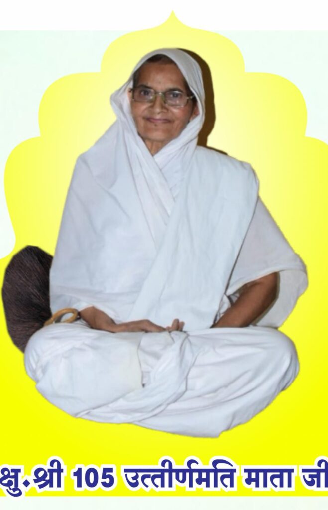Kshullika Shri 105 Uttirnamati Mataji received initiation from Acharya Shri 108 Udaar Sagarji Maharaj.